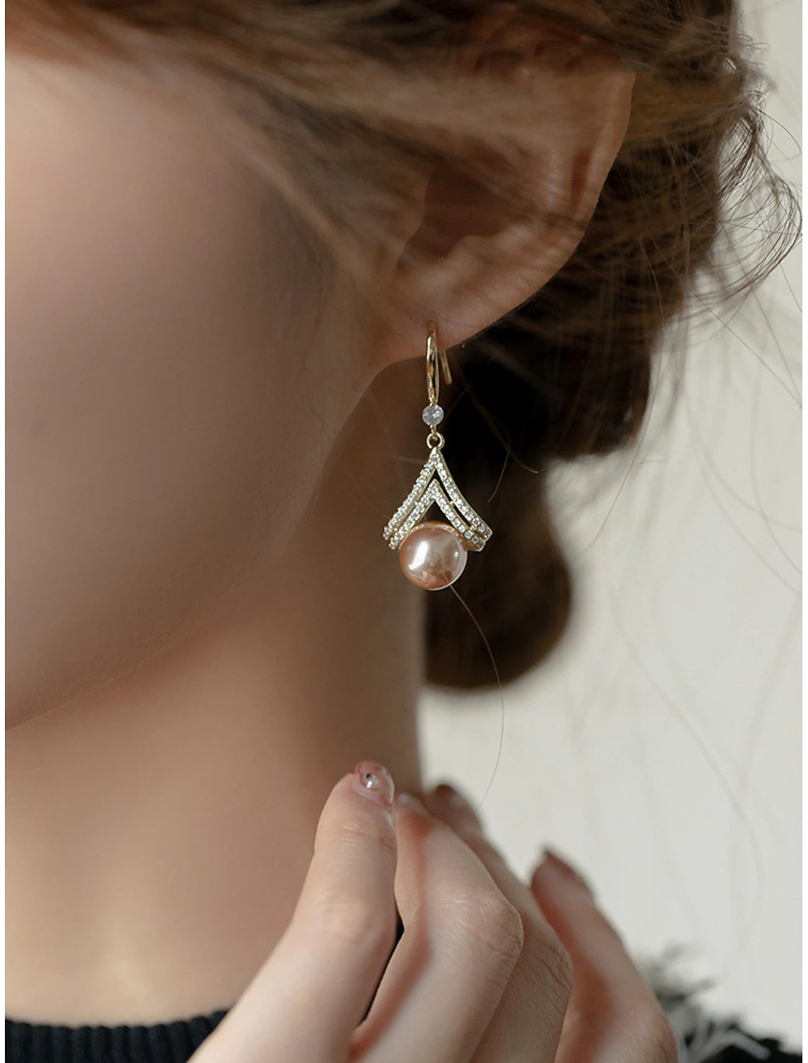 Wholesale Women's Pearl Stud Earrings Fine Jewelry Classic Precious Cute Stylish Earrings Jewelry Rose Gold For Gift Festival 1 Pair - Rose Gold