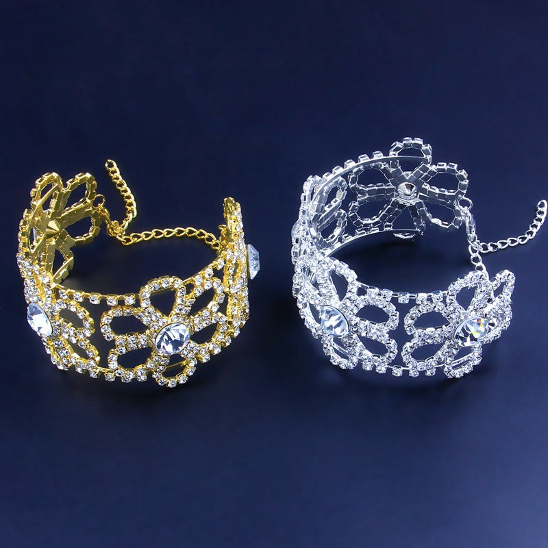 Wholesale Women's Tennis Bracelet Cut Out Flower Precious Fashion Luxury Rhinestone Bracelet Jewelry Silver / Gold For Gift Engagement - Gold