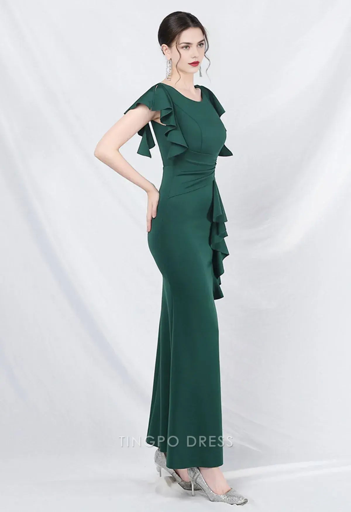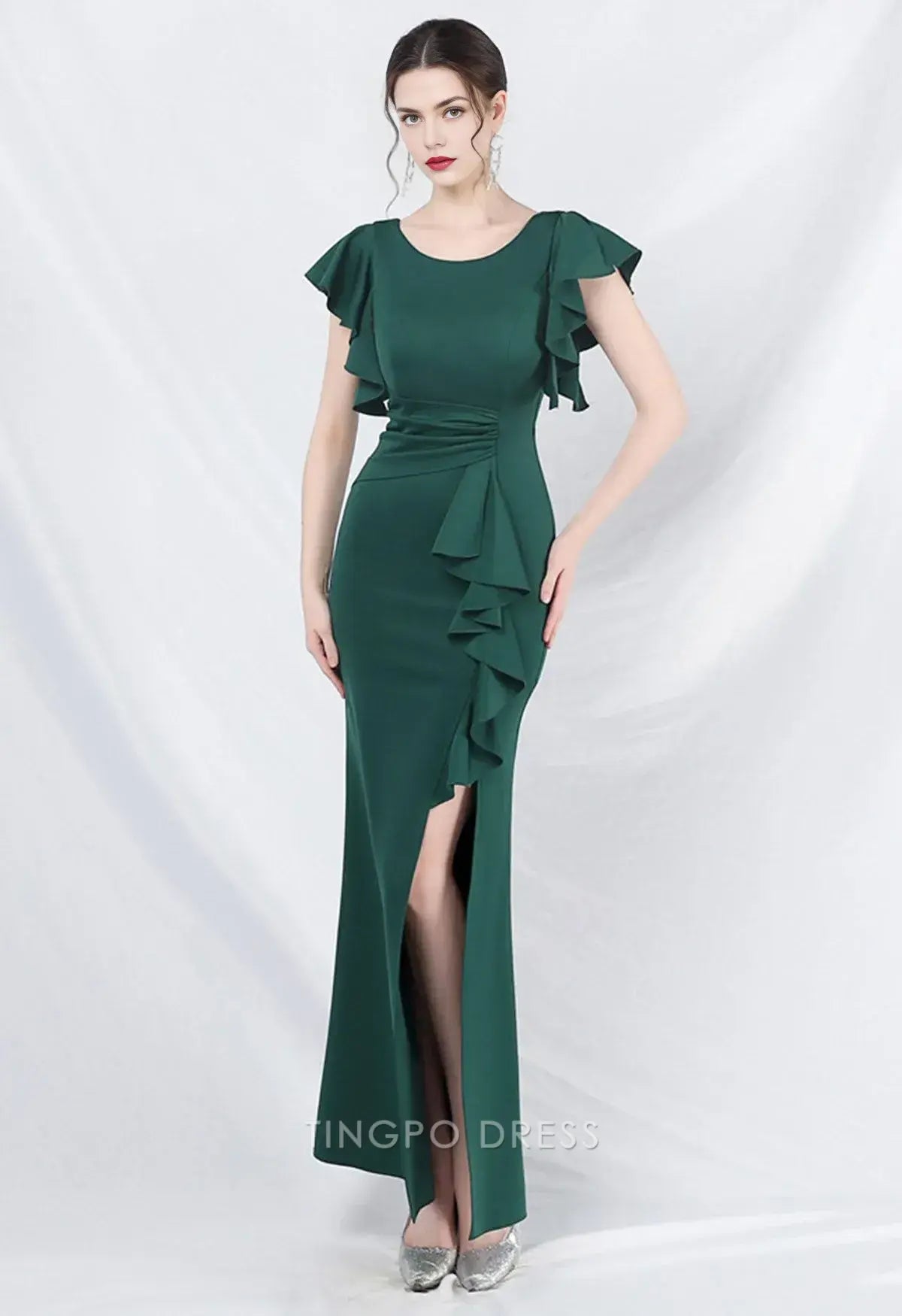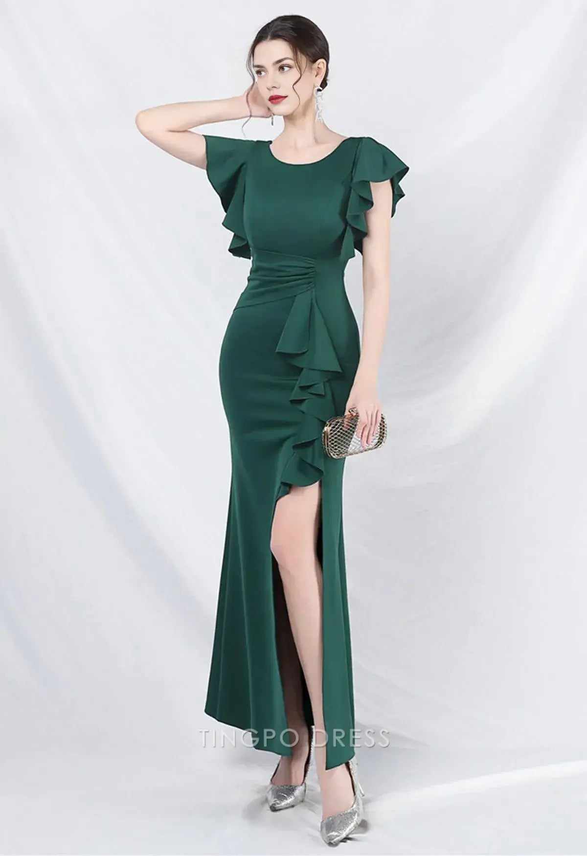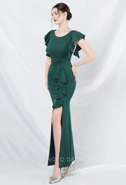 Elegant Mermaid Round Neck Ruffled Sleeve Side Slit Mermaid Maxi Dress Prom Dress - US 2 / UK 6 / EU 32