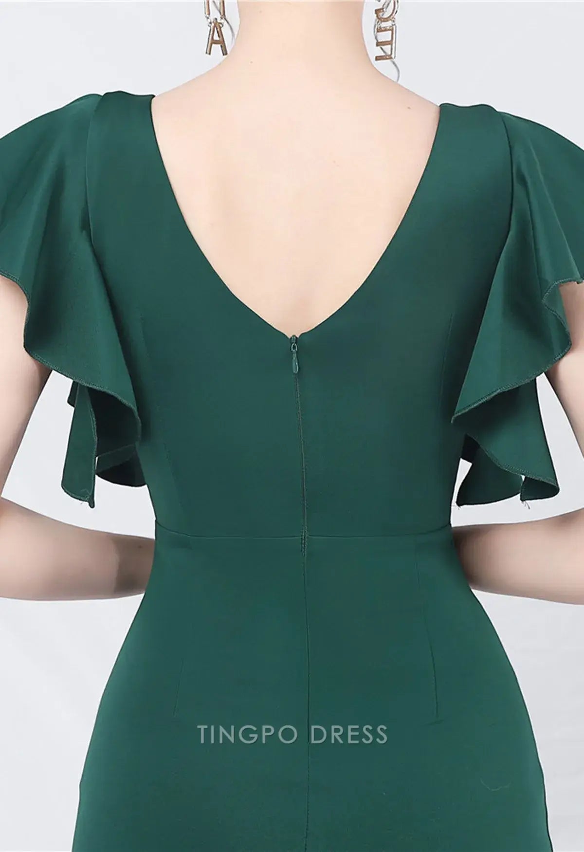 Round Neck Ruffled Sleeve Side Slit prom dress: Suitable for: proms, formal dinners, black-tie weddings, and upscale parties.