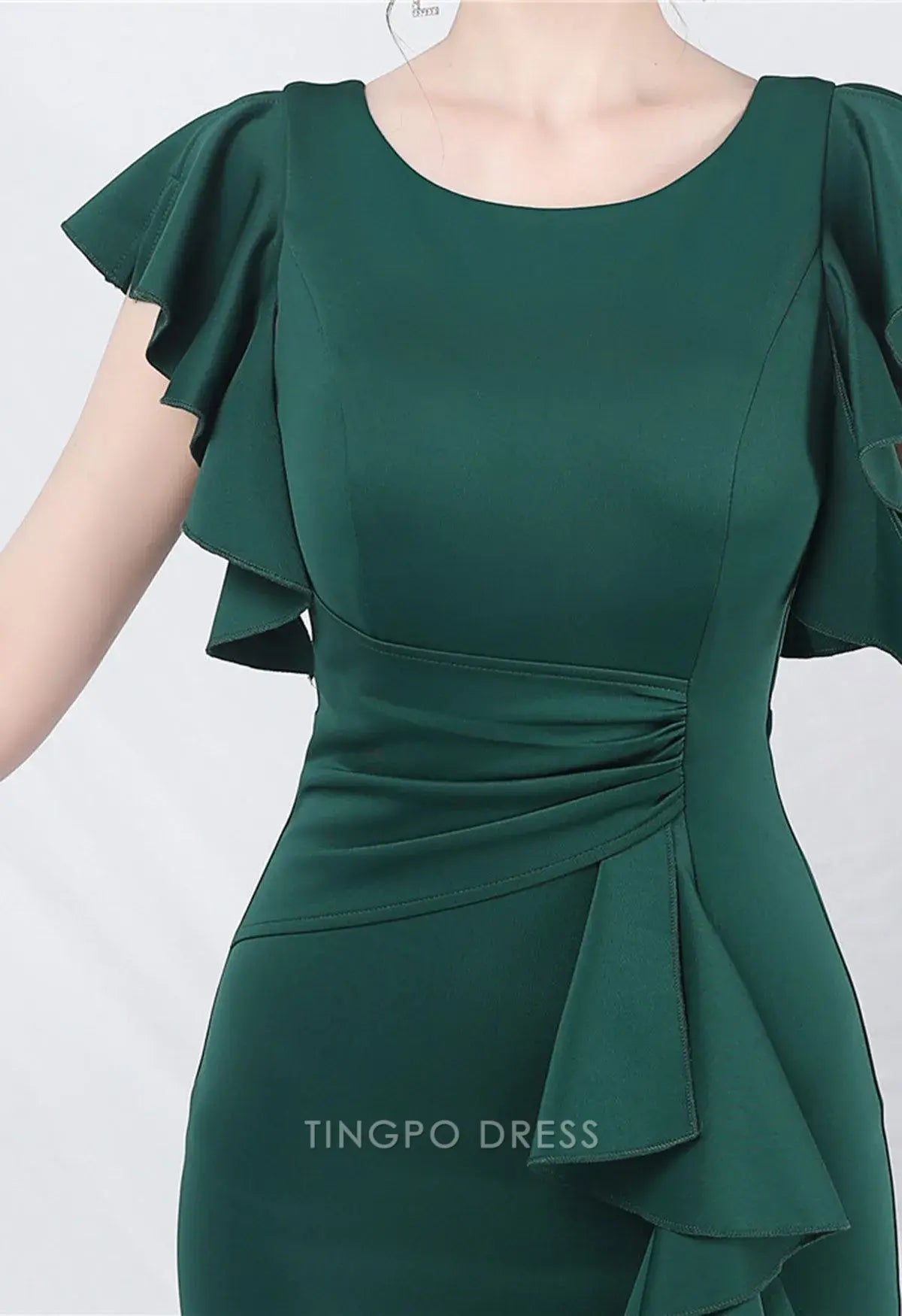 Step into elegance with Tingpo's round neck ruffled sleeve side slit mermaid maxi dress. The round neck design offers a classic look, while the ruffled sleeves add a touch of romance and detail. The side slit enhances movement, and the mermaid cut creates a stunning and curvy appearance, perfect for formal events or special occasions.