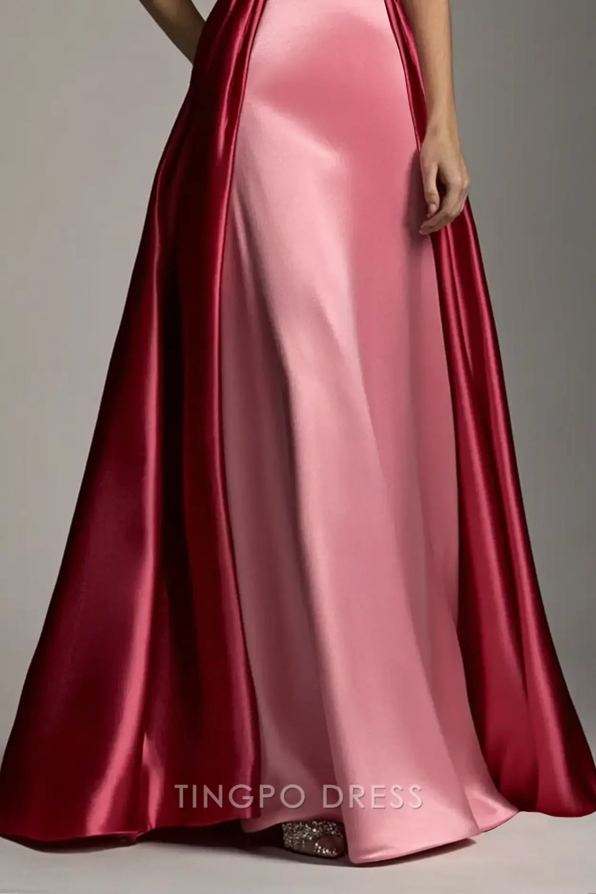 Elegant Strapless Two-Tone Satin A-Line Floor-Length Maxi Dress Prom Dress