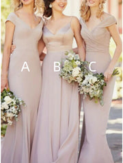 Wholesale A-Line Bridesmaid Dress V Neck Sleeveless Elegant Floor Length Stretch Chiffon with Ruching