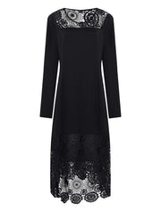 Wholesale A-Line Cocktail Dresses Plus Size Dress Party Wear Wedding Guest Ankle Length Long Sleeve Jewel Neck Spandex with Lace - Black / US 2 / UK 6 / EU 32