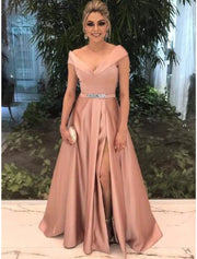 Wholesale  A-Line Elegant Prom Formal Evening Valentine's Day Dress Off Shoulder Short Sleeve Sweep / Brush Train Satin with Split Front