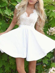 Wholesale A-Line Homecoming Dresses Little White Dresses Dress Holiday Graduation Short / Mini Short Sleeve V Neck Satin with Appliques - US 2 / UK 6 / EU 32