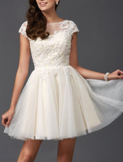Wholesale A-Line Homecoming Dresses Little White Dresses Dress Holiday Graduation Short / Mini Sleeveless Jewel Neck Lace with Appliques - US 2 / UK 6 / EU 32