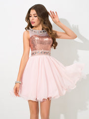 Wholesale A-Line/Princess Sheer Neck Sequin Sleeveless Short Chiffon Cocktail Dresses - US 2 / UK 6 / EU 32