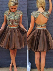 Wholesale A-Line/Princess Sleeveless Scoop Beading Short/Mini Organza Two Piece Dresses