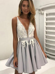 Wholesale A-Line/Princess V-Neck Sleeveless Satin Applique Short/Mini Dresses