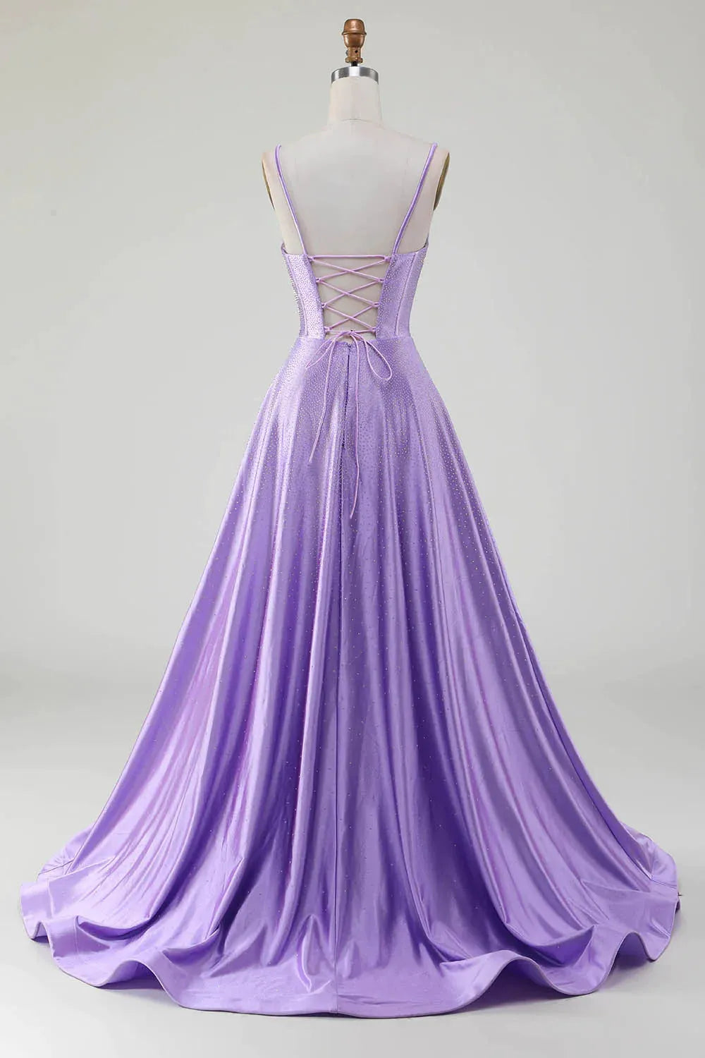 Wholesale Lilac Glitter A-Line Spaghetti Straps Long Beaded Prom Dress with Slit prom dresses shops - US 2 / UK 6 / EU 32