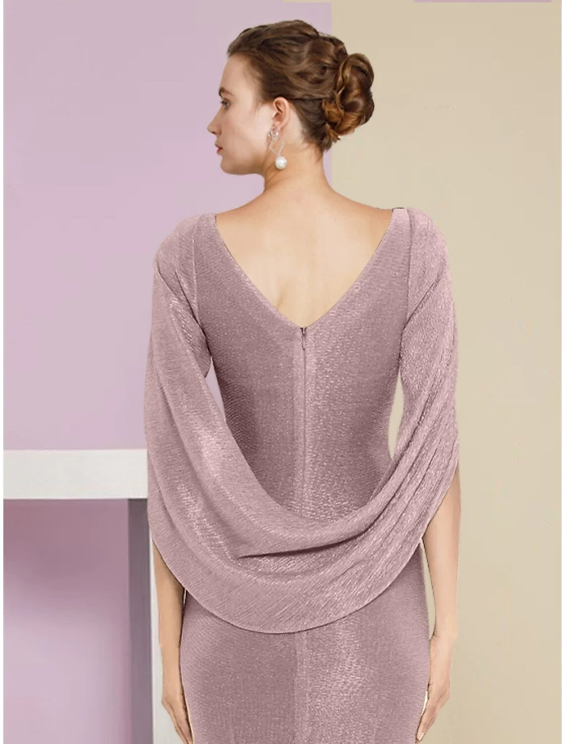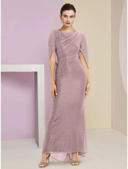 Wholesale Mermaid / Trumpet Mother of the Bride Dress Wedding Guest Sparkle & Shine Elegant Scoop Neck Ankle Length Chiffon Half Sleeve with Sequin Ruching Solid