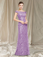 Wholesale Sheath / Column Mother of the Bride Dress Elegant Jewel Neck Floor Length Lace Cap Sleeve with Appliques - US 2 / UK 6 / EU 32