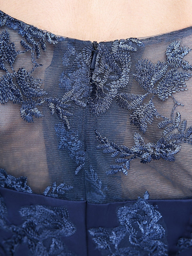 Wholesale Sheath / Column Mother of the Bride Dress Elegant See Through Bateau Neck Ankle Length Chiffon Lace Half Sleeve with Lace - US 2 / UK 6 / EU 32