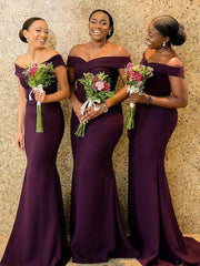 Wholesale Sheath/Column Stretch Crepe Ruched Off-the-Shoulder Sleeveless Sweep/Brush Train Bridesmaid Dresses